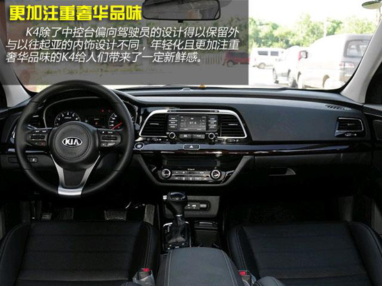 K4除了中控臺(tái)偏向駕駛員的設(shè)計(jì)得以保留外與以往起亞的內(nèi)飾設(shè)計(jì)不同,年輕化且更加注重奢華品味的K4給人們帶來了一定新鮮感,相當(dāng)出眾的內(nèi)飾氛圍似乎令整車的華麗程度上了一個(gè)檔次,相比于外觀的沉穩(wěn),內(nèi)飾方面顯然要出彩的多。