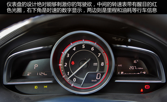 馬自達3 Axela昂克賽拉簡潔規(guī)整的中控臺采用了全黑內(nèi)飾配色并搭配仿碳纖維面板,不但流露出新的一代馬自達風格,并且功能分區(qū)清晰,上手十分容易。馬自達3 Axela昂克賽拉儀表十分有特色,中間圓筒狀提供了車速顯示(旗艦版本的儀表區(qū)域則是轉(zhuǎn)速),而兩側(cè)翼狀顯示屏則提供了轉(zhuǎn)速表、油量信息,清晰直觀,不落于俗套。