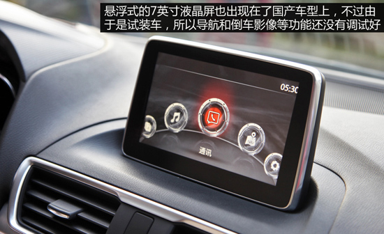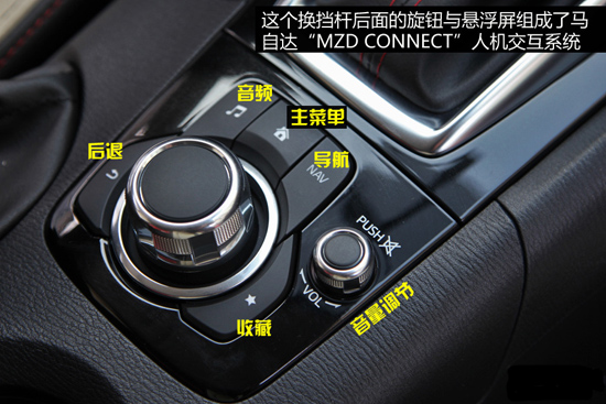 馬自達3 Axela昂克賽拉提供了“MZD CONNECT馬自達悅聯(lián)系統(tǒng)”的選裝包,這樣就讓低配的車型也能享受中控臺彩色大屏、導航、倒車影像、互聯(lián)網(wǎng)、內(nèi)置APP應用、實時路況、藍牙電話等實用配置。中控臺頂部獨立設(shè)計的彩色液晶屏,不但可以通過擋位臺后面的人機操控面板使用,更重要的是沒有占用中控臺區(qū)域,而顯示位置不用低頭,更符合一款運動車風范。