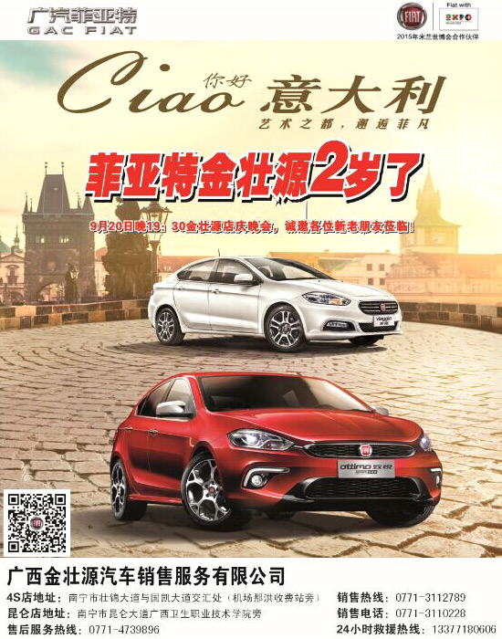 廣西金壯源廣汽菲亞特20日二周年店慶五重禮遇:
