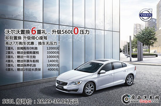 即日起至9月30日置換沃爾沃S60L,尊享6重禮,總價(jià)值最高達(dá)7萬,換車無壓力!