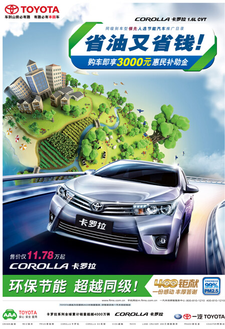 相比原補貼政策,新政策的最大變動是把申報門檻從原來百公里油耗6.9升的限制調(diào)至5.9升。這對汽車的燃油經(jīng)濟性能提出了更高的要求。此次全新卡羅拉、威馳成功入選惠民工程對象車型,足以證明一汽豐田兩款車型在燃油經(jīng)濟性及對環(huán)保節(jié)能方面的技術(shù)投入得到國家相關(guān)部門的認(rèn)可,極力為國家環(huán)保事業(yè)做出貢獻(xiàn),也為廣大消費者提供經(jīng)濟、放心的優(yōu)質(zhì)車型。