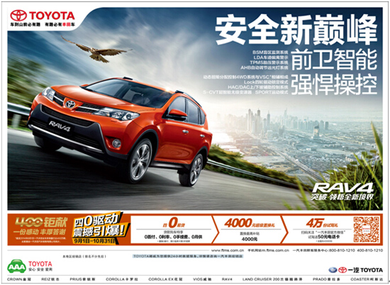經(jīng)過豐田不斷的創(chuàng)新,如今已經(jīng)發(fā)展到了第四代車型,加上久經(jīng)市場(chǎng)的考驗(yàn),品質(zhì)保證的信譽(yù)度,在2014年上半年1-6月RAV4銷量達(dá)到6.33萬輛。不僅如此,RAV4在華南地區(qū)更是受到眾多消費(fèi)者的青睞以及喜愛,根據(jù)廣東地區(qū)今年上半年累計(jì)上牌數(shù)據(jù)顯示,全新RAV4上牌數(shù)達(dá)到11928臺(tái),穩(wěn)坐廣東地區(qū)SUV車型上牌榜探花位置。