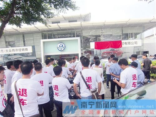 10月26日,一汽大眾速騰再次激起新一輪浪潮——全國各地速騰車主相約在這一天喊出“無良大眾,滾出中國,設(shè)計缺陷,荒唐解決,反對補(bǔ)!”的口號,反對速騰“召回打補(bǔ)丁”的方案。南寧的速騰車主也在10月26日上午,分別到一汽大眾位于南站大道和科園大道的兩家4S店進(jìn)行維權(quán)。