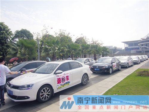 10月26日上午,南寧部分速騰車主參與了這次集體維權(quán)行動,反對一汽大眾“在受影響的車輛的縱臂上安裝金屬襯板”這一措施。維權(quán)車主50多人,駕著40 多輛車,身穿統(tǒng)一維權(quán)服裝,車身上貼著統(tǒng)一維權(quán)標(biāo)志,經(jīng)由華南城、南站大道、科園大道、會展中心路線進(jìn)行維權(quán)活動。維權(quán)車主分別向經(jīng)銷商遞交了“聯(lián)合聲明”,明確表示拒絕“打補(bǔ)丁”的補(bǔ)救方案,希望一汽大眾能更換其他方案,保障車主的人身安全。經(jīng)銷商代表亦表示會將維權(quán)車主的訴求向廠家轉(zhuǎn)達(dá)。