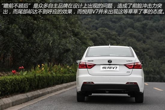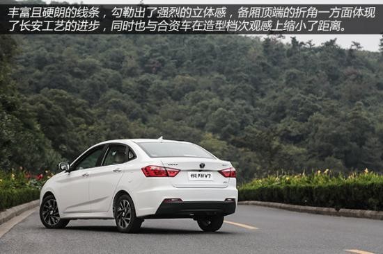“瞻前不顧后”這是眾多自主品牌在設(shè)計上出現(xiàn)的問題,造成了前臉沖擊力突出,而尾部卻達不到呼應(yīng)的效果,而悅翔V7并未出現(xiàn)這等草草了事的態(tài)度。豐富且硬 朗的線條,勾勒出了強烈的立體感,備廂頂端的折角一方面體現(xiàn)了長安工藝的進步,同時也與合資車在造型檔次觀感上縮小了距離。