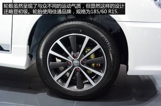 輪胎與翼子板內(nèi)襯的距離稍大,過大的縫隙和運(yùn)動定位并不吻合,不過車身側(cè)面腰線的刻畫更有新意,使側(cè)面看上去更加飽滿;輪圈雖然呈現(xiàn)出了與眾不同的運(yùn)動氣質(zhì),但這樣的設(shè)計(jì)還略顯初級。