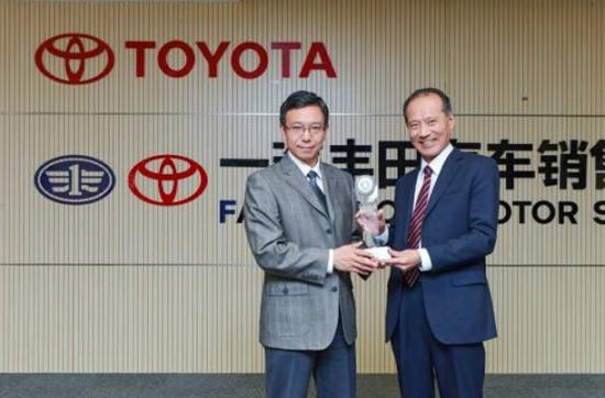 (上圖:一汽豐田常務副總平野雅則從C-NCAP管理中心副主任王瑋楠手中接過獎杯)