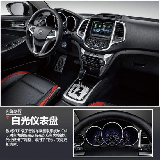 致尚XT作為中國品牌兩廂車第一車型,上市以來備受市場追捧,成功實現(xiàn)兩廂車市場占位,成為能夠與合資車媲美的主力車型, 2015年1,2月銷量超萬輛。從新款的前臉來看,幾乎與老款保持了高度一致,細節(jié)部分,把老款前霧燈下方的兩條鍍鉻裝飾改為了與CS35類似的日間行車燈,同樣采用LED光源。新款車型對輪轂進行重新造型,16寸五輻輪轂融合品牌“V”標設計元素,并采用熏黑處理,更加時尚運動。此外,新款車型還增加了赤焰紅、閃電藍兩種配色供用戶選擇。配置升級帶來智能車載互聯(lián)系統(tǒng)In Call,新增語音控制,手機映射,并完美融合多項應用功能,得到了更好的人機交互體驗。新車對車內的儀表盤背光以及車內按鍵燈光也做出了調整,采用了更加符合潮流的白色背光,在夜晚行車時增加視覺質感。