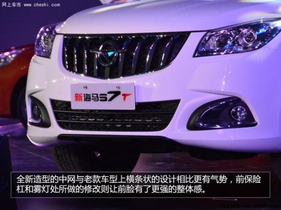 此次上市的新海馬S7相比老款車型在前臉部分做出了一些改進(jìn),雖然整體還是維持了S7系列一貫的車身輪廓;但細(xì)節(jié)之處的修改使得這款車看起來更加年輕。全新造型的中網(wǎng)與老款車型上橫條狀的設(shè)計(jì)相比更有氣勢,前保險(xiǎn)杠和霧燈處所做的修改則讓前臉有了更強(qiáng)的整體感。頭燈組內(nèi)集成了LED日間行車燈和近光透鏡,頂配車型還帶有大燈自動開閉功能,但不提供氙氣大燈。