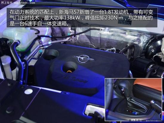 在動力系統(tǒng)的匹配上,新海馬S7新增了一臺1.8T發(fā)動機(jī),帶有可變氣門正時(shí)技術(shù),最大功率138kW,峰值扭矩230N·m,與之搭配的是一臺6速手自一體變速箱。