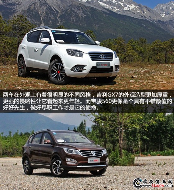 今天對比的時兩款自主品牌SUV,雖然這兩款車型乍一看并沒有什么相似之處,但是在之前小編試駕之后發(fā)現(xiàn),其實骨子里注重的都是實用主義,所以今天我們拿來做一番比較。其中吉利GX7運動版,在吉利品牌整合之后的全新產(chǎn)品,能夠擁有吉利最新的產(chǎn)品品質,而寶駿560的前身寶駿730取得了不錯的銷量和口碑,那么就有理由去相信它也具有很高的實力。