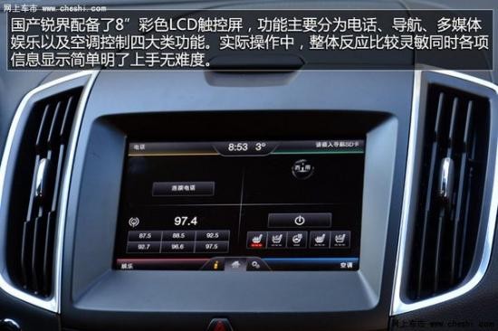 全新福特銳界首次搭載的2.7升EcoBoost GTDi V6汽油直噴渦輪增壓發(fā)動機(jī),并配備SeletShiftTM 6速手自一體變速箱。這款發(fā)動機(jī)達(dá)到325馬力(242kw/5500rpm)的最大輸出功率,最大扭矩達(dá)475!っ/2500-4500rpm。全新福特銳界還提供另外一種動力選擇。全新升級的2.0升EcoBoost GTDi發(fā)動機(jī),采用雙渦流渦輪增壓技術(shù),配合全新的S/S自動啟停系統(tǒng),更可進(jìn)一步降低燃油消耗。