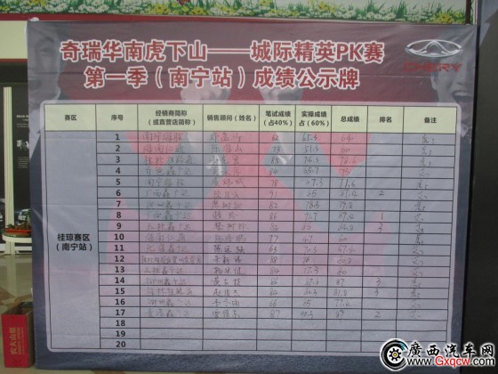 本次PK賽整體競賽水平非常高,奇瑞華南大區(qū)為激發(fā)銷售團(tuán)隊斗志所設(shè)獎項可謂大手筆,力度之強(qiáng)前所未見。獲獎選手都將獲得奇瑞華南大區(qū)提供的豐厚現(xiàn)金獎勵,經(jīng)過一天的緊張精彩的比賽,最終來自廣西鑫廣達(dá)的賴珍以總成績89.4分獲得冠軍。龍虎風(fēng)云如下: