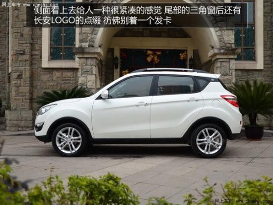 這款車(chē)型的外觀(guān)是由長(zhǎng)安意大利研發(fā)中心的意大利設(shè)計(jì)師完成,更具有歐洲風(fēng)格,較短的前懸與后懸讓這款車(chē)在有限的車(chē)身長(zhǎng)度中獲得了更多的乘用空間,車(chē)頂加裝了行李架,滿(mǎn)足CS35作為SUV車(chē)型必要的裝備。長(zhǎng)安CS35的尾部設(shè)計(jì)還是非常漂亮的,看上去飽滿(mǎn)厚實(shí),給人足夠的安全感,后車(chē)窗下一道剛毅的平行線(xiàn)點(diǎn)綴得恰到好處。