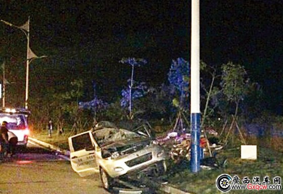 9月3日晚11時(shí)許,欽州市一輛小汽車在經(jīng)過一處積水路段時(shí),司機(jī)因猛踩剎車造成汽車失控。該車“漂移”了40多米,撞上路邊的燈桿后才停了下來,釀成1死4傷的慘劇。