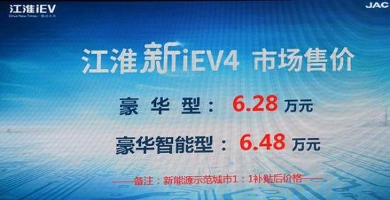 日前,江淮新款iEV4正式宣布上市,新車推出兩款車型可選,作為純電動車型,新車以國家與地方1:1補貼為例,一共可補貼9萬元,補貼后的售價分別為6.28萬和6.48萬元。
