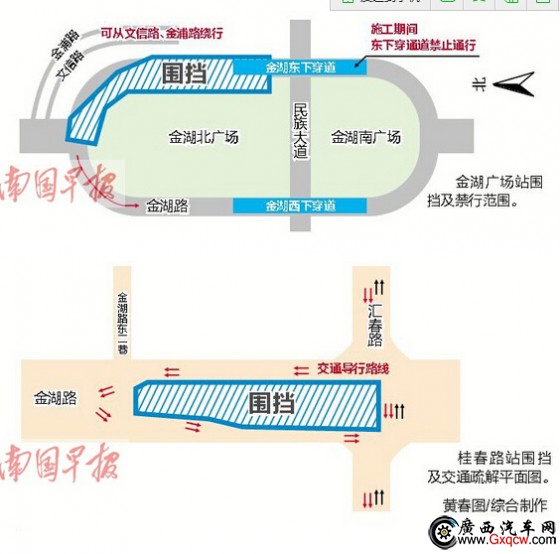 南寧地鐵3號線金湖廣場站、桂春路站金湖南路9月24日封閉施工