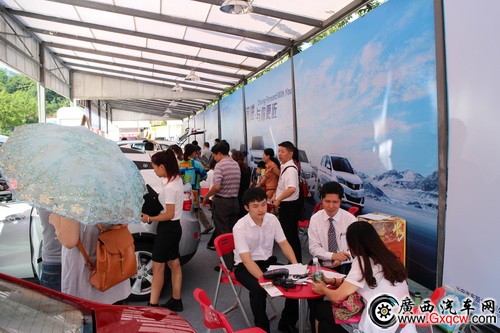 展位里擠滿(mǎn)了看車(chē)、購(gòu)車(chē)的人群