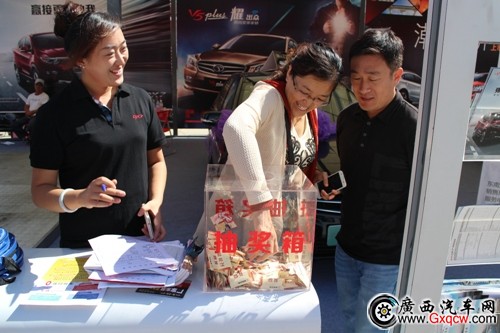 參加交車儀式后,回到展位的男子又被邀請參加抽獎活動,這次男子邀請自己的愛人“操刀”。興奮的“女主人”將手臂伸入獎箱中,抽出一張獎券,竟然還是蠻有分量的裝潢大獎,讓自己和愛人,以及圍觀的觀眾和在場的銷售人員都感到高興。
