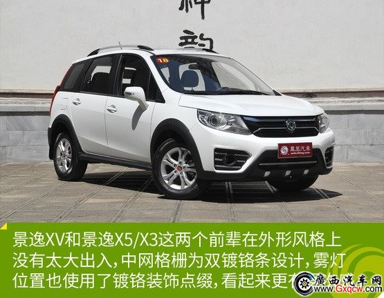 從外形上看,景逸XV與景逸家族的車型一脈相承,特征相對比較明顯。特點(diǎn)較為明顯的是景逸XV的進(jìn)氣格柵,的確變得更加時尚了。高亮的黑色格柵輔以兩條蒼勁有力的鍍鉻線條,很有氣勢。霧燈附近的鍍鉻飾條很有辨識度,有一定的設(shè)計(jì)感。景逸XV承襲了景逸SUV家族的“加大號”基因,車身尺寸為4348×1835×1705mm,軸距長達(dá)2685mm,這也為它的大空間提供了有利基礎(chǔ)。