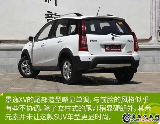 景逸XV尾部延續(xù)了X3上的設(shè)計(jì),沒有任何調(diào)整。高位剎車燈上形成了一個小尾翼。最明顯的特征還屬右下角處的紅色“CVT”標(biāo)識。車身的越野包圍對于這樣一款城市SUV車型來說也顯得十分個性有型。