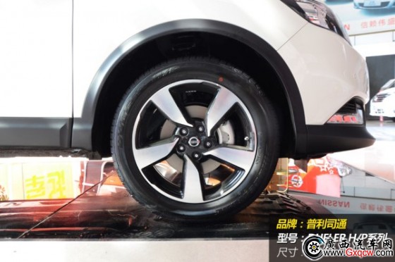 新逍客配備了一款銀黑雙色的旋風(fēng)輪轂,視覺沖擊力很強(qiáng),與之匹配的是尺寸為215/55 R18的普利司通DUELER H/P(動(dòng)力俠)系列輪胎,市場(chǎng)價(jià)格約1100元/條。