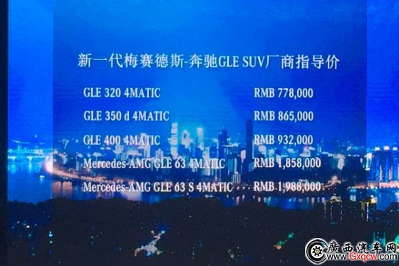 10月19日晚,全新奔馳GLE正式宣布上市,新車是現(xiàn)款M級的中期改款,推出320 4MATIC、350 d 4MATIC、400 4MATIC、 AMG 63 4MATIC、63 S 4MATIC,共五款車型可選,售價區(qū)間為77.80-198.80萬元,具體售價信息參看下表: