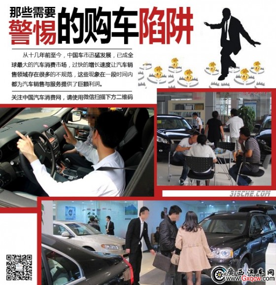 從十幾年前至今,中國車市迅猛發(fā)展,已成全球最大的汽車消費市場,過快的增長速度讓汽車銷售領(lǐng)域存在很多的不規(guī)范,這些現(xiàn)象在一段時間內(nèi)都為汽車銷售與服務(wù)提供了巨額利潤。反觀消費者,很多都是首次購車,卻對所謂的“朋友”、“有人”過于信賴,反而因為習(xí)慣“走后門”中了4S店挖好的各種坑。近期,小編將從看車、訂車、提車三個角度解析4S店慣用的購車陷阱,為大家的購車之旅保駕護航。