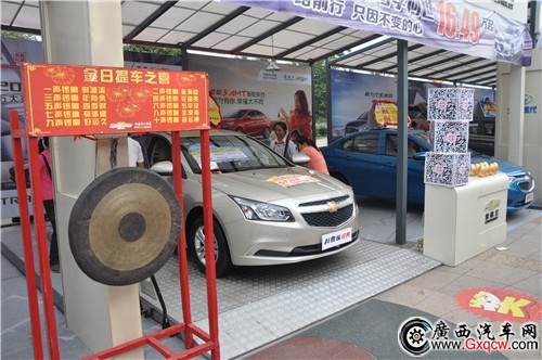 10月24~25日,2015(第八屆)中國名城汽車巡展玉林站在江南公園開展,20來個品牌參與了此次巡展,吸引了眾多玉林消費者到場賞車、購車。上汽通用雪佛蘭作為本站參展品牌之一,派出了賽歐3、經(jīng)典科魯茲兩款車型,受到了玉林消費者的喜愛。為慶,F(xiàn)場成交,上汽通用雪佛蘭帶來了一面金鑼。