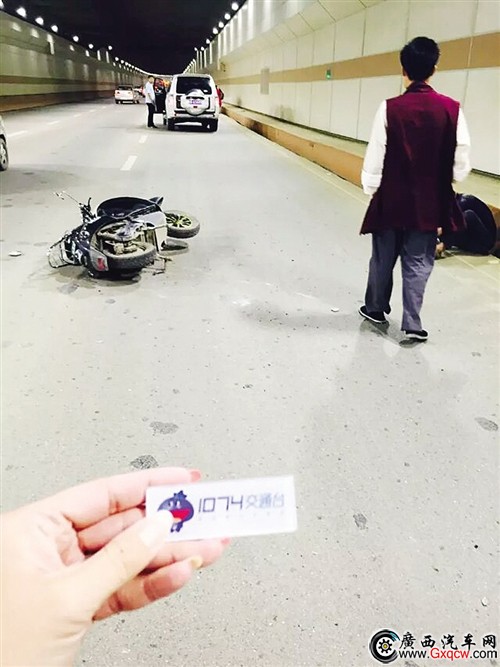 事發(fā)當(dāng)天22時(shí),姚鈺下班開車回家。進(jìn)入鳳嶺南隧道后,她發(fā)現(xiàn)有一輛電動(dòng)車倒在路中央,一名男子倒在路旁,渾身是血,而現(xiàn)場地上有很多碎石和一些疑似車輛零件的東西。