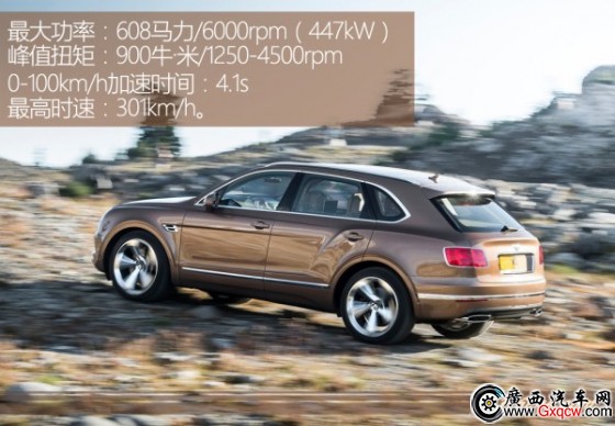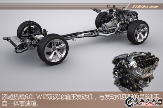 動(dòng)力方面,賓利添越搭載的是一臺(tái)6.0L W12雙渦輪增壓發(fā)動(dòng)機(jī),其最大輸出功率為608馬力/6000rpm,峰值扭矩為900!っ/1250-4500rpm,這臺(tái)全新的發(fā)動(dòng)機(jī)參數(shù)相比此前歐陸GT Speed所搭載的高性能W12發(fā)動(dòng)機(jī),峰值扭矩提升了100!っ祝虼颂碓皆谛阅芊矫娴谋憩F(xiàn)定不會(huì)令你失望。官方稱,該車0-100km/h加速時(shí)間為4.1秒,最高時(shí)速可達(dá)到301km/h。同時(shí),為了應(yīng)對(duì)各種路況的考驗(yàn),添越配備了一套駕駛模式選擇系統(tǒng),包含四種公路模式和四種越野模式,確保其兼具公路與越野雙向性能。