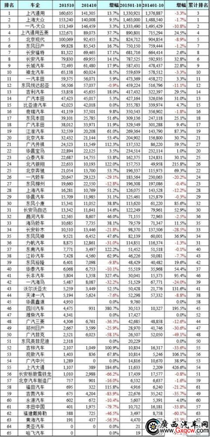 根據(jù)乘聯(lián)會最新數(shù)據(jù)整理出10月份中國市場所有乘用車企業(yè)銷量排行榜,當(dāng)月上汽通用再度奪冠,南北大眾集體增長。所有車企中有8家同比翻倍,兩家銷量為0輛。