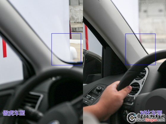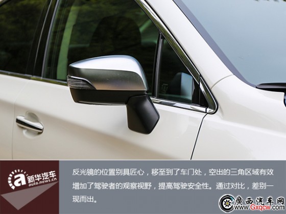 反光鏡的位置別具匠心,移至到了車門處,空出的三角區(qū)域有效增加了駕駛者的觀察視野,提高駕駛安全性。在A柱設(shè)計(jì)方面也有很大改善,這樣的設(shè)計(jì)風(fēng)格在傲虎車身上也有體現(xiàn),通過對(duì)比,差別一現(xiàn)而出。