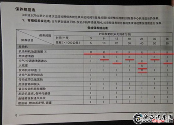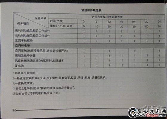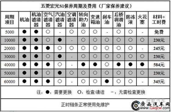 從官方保養(yǎng)手冊(cè)中我們可以看到,新車的首次保養(yǎng)自購(gòu)車之日起(以用戶購(gòu)車發(fā)票日期為準(zhǔn)),車輛行駛?cè)齻(gè)月或5000公里內(nèi)(以先到者為準(zhǔn)),到五菱汽車4S店進(jìn)行免費(fèi)的首次保養(yǎng);在行駛到10000公里并進(jìn)行第二次車輛保養(yǎng)后,其保養(yǎng)周期將固定為半年或10000公里(以先到者為準(zhǔn))。