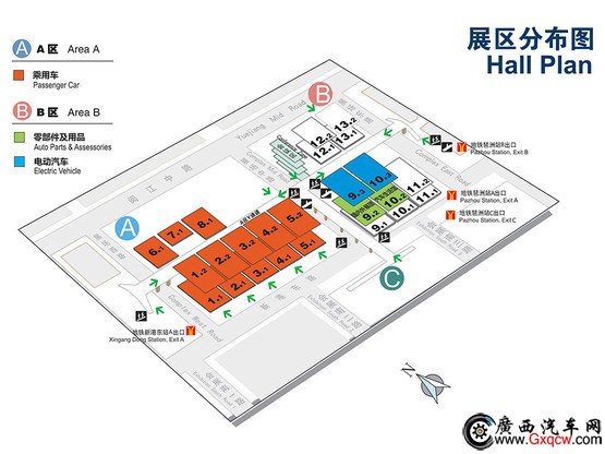 本屆廣州車展共使用中國進出口商品交易會展館A區(qū)全部13個展廳及B區(qū)4個展廳,以及南北廣場室外展區(qū),展會規(guī)模達22萬平方米,其中A區(qū)展示乘用車,B區(qū)展示電動汽車、汽車零部件及用品。