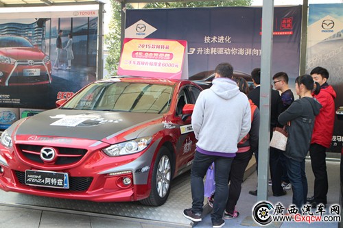 “當(dāng)然有,這次我們的阿特茲、馬自達(dá)6都有不同程度的優(yōu)惠,值得一提的是店里還有送油卡,預(yù)付抵現(xiàn)金活動(dòng),這些都是為巡展量身定制的,也只有這兩天買車的顧客才能享受!笨梢钥闯,一汽馬自達(dá)的讓利優(yōu)惠活動(dòng)讓消費(fèi)者真正動(dòng)了心,通過(guò)電話邀約來(lái)到現(xiàn)場(chǎng)的客戶紛紛下單,洽談區(qū)座無(wú)虛席,銷售氣氛火爆。