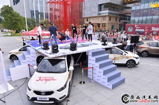 活動(dòng)當(dāng)天,主辦方以4輛駿派D60作為“臺(tái)柱子”現(xiàn)場(chǎng)支撐起一座鋼木結(jié)構(gòu)舞臺(tái),更有演員在上面跳起了肚皮舞、街舞、雜技等表演,隨著演員們?cè)谖枧_(tái)上的每一次躍起落下、翻滾旋轉(zhuǎn)都會(huì)引起舞臺(tái)的一次微微浮動(dòng),這也讓現(xiàn)場(chǎng)觀眾們的心也隨著舞臺(tái)一起懸了起來(lái),大家都不禁為演員和駿派D60捏了一把汗。