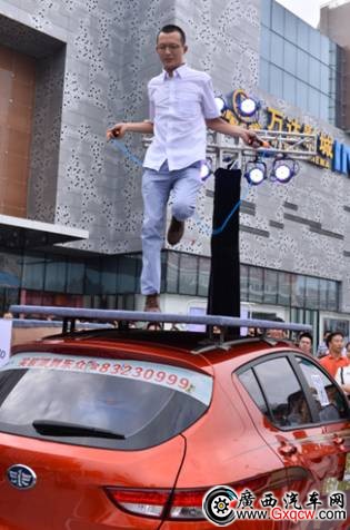 活動(dòng)現(xiàn)場(chǎng),另一個(gè)能讓觀眾們最直觀的感受駿派D60的抗壓性和安全性的恐怕當(dāng)屬表演間歇的游戲環(huán)節(jié)了,現(xiàn)場(chǎng)從觀眾中選出選手在駿派D60車頂上面進(jìn)行跳繩比賽,選手的每一次跳動(dòng)都讓駿派D60的“車震”更加猛烈,而駿派D60卻依然穩(wěn)健的撐著他們完成了比賽,賽后選手也是對(duì)駿派D60的抗震性和安全性贊口不絕,表示自己對(duì)駿派D60的表現(xiàn)是既驚訝又滿意。