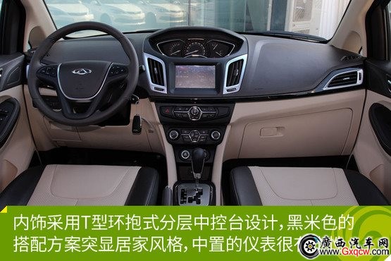 內(nèi)飾設(shè)計(jì)上,艾瑞澤M7采用了T型環(huán)抱式分層中控臺(tái)設(shè)計(jì),并采用了黑色嵌米色搭配。操控臺(tái)上的功能布局、空調(diào)出風(fēng)口的設(shè)計(jì),以及方向盤(pán)、排擋的樣式,都與艾瑞澤系列家族的設(shè)計(jì)保持一致。