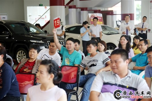 緊接著“菲翔新車7.5折競拍”更是刺激。競拍開始,大家紛紛舉起手中的號牌,追加價(jià)格參與競拍。經(jīng)過一場激烈的競拍,號牌為25號的謝先生以11.26萬元的價(jià)格,成功競拍下菲翔新車。