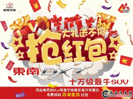 12月4日-8日,一年一度的東盟車展即將在南寧會(huì)展中心拉開(kāi)帷幕,凡是在車展現(xiàn)場(chǎng)購(gòu)車客戶,都可以參加現(xiàn)場(chǎng)抽獎(jiǎng)活動(dòng)哦,100%中獎(jiǎng)!獎(jiǎng)品豐富,有phone6s、50寸LED電視、取暖器、洗衣機(jī)等各種禮品!更有東南V5半價(jià)車搶購(gòu),只需3.94萬(wàn)元即可開(kāi)回家!百萬(wàn)紅包等你來(lái)?yè),憑單頁(yè)就可免費(fèi)領(lǐng)取哦!心動(dòng)不如行動(dòng)吧,東南汽車A12展位等著你!