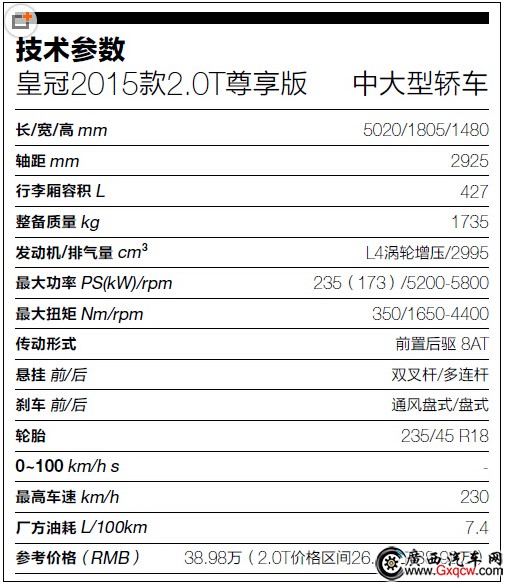 總結(jié)起來,配備2.0T發(fā)動(dòng)機(jī)的新皇冠著實(shí)在同級(jí)別中動(dòng)力、配置、舒適和靜謐性等方面都屬于一流,用車成本比較劃算,前置后驅(qū)的設(shè)計(jì)也能帶來更多駕駛樂趣,如果內(nèi)飾可以依據(jù)用戶年齡提供幾種選擇方案,或許能夠有更好的市場(chǎng)表現(xiàn)。