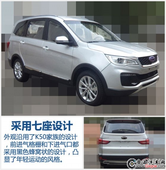 外觀方面,全新七座SUV的側(cè)面線條與開瑞K50S相似,整體沿用了開瑞K50家族的設(shè)計風格,進氣格柵和下進氣口都采用了黑色蜂窩狀的設(shè)計,凸顯了年輕運動的風格。尾部后備箱中部的一條鍍鉻裝飾橫貫鏈接兩側(cè)后尾燈,尾燈采用的熏黑設(shè)計與整車的運動風相一致,雖然是模擬的雙邊雙出鍍鉻排氣管,但這樣的設(shè)計也為尾部增色不少。同時,新車還將提供三種不同輪轂造型,大小為205/55 R17的輪胎供選擇。