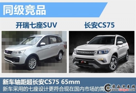在如今火爆的SUV市場,以長安CS75為代表的多款國產(chǎn)自主SUV在各大合資、進口品牌的競爭下也一直保持著較高的銷量。開瑞全新七座SUV上市后將對手標準了長安CS75等這一級別的國產(chǎn)SUV,車身尺寸上兩車相差不大,但新車采用的七座設(shè)計更符合現(xiàn)在國內(nèi)市場的需求,將對部分國內(nèi)主流SUV產(chǎn)生一定競爭。