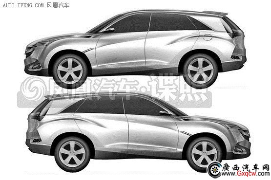 謳歌SUV-X采用家族式設(shè)計(jì)語言,從申報(bào)圖看前進(jìn)氣格柵采用六邊形設(shè)計(jì),并配合大尺寸裝飾板襯托車標(biāo),前燈組的設(shè)計(jì)霧燈設(shè)計(jì)交相呼應(yīng),使整車前臉設(shè)計(jì)具有將強(qiáng)的視覺沖擊力。多層次的腰線給車身側(cè)面增加不少動(dòng)感。