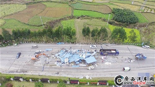 1月13日,在209國(guó)道廣西柳州市融安縣浮石鎮(zhèn)路段,工人們?cè)诓鸪∈召M(fèi)站據(jù)新華社本報(bào)訊(記者 王志鵬 通訊員 周睿)從今年起,廣西取消全區(qū)49個(gè)政府還貸的二級(jí)公路收費(fèi)站。1月16日,記者從自治區(qū)公路管理局獲悉,目前多個(gè)收費(fèi)站已經(jīng)完成拆除工作,而桂西公路管理局更是開展為期一個(gè)月的路政管理專項(xiàng)整治行動(dòng)。