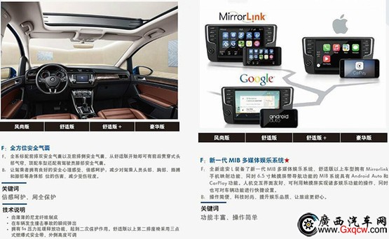 配置部分,全新途安L高配車型將配備包括支持Android Auto以及CarPlay的6.5英寸MIB系統(tǒng)、ESP電子車身穩(wěn)定系統(tǒng)、碰撞預(yù)防系統(tǒng)、智能胎壓監(jiān)測系統(tǒng)、電子手剎、自動剎車系統(tǒng)、變道輔助系統(tǒng)、全景天窗等多項配置。除低配的280TSI 手動風(fēng)尚版以及280TSI DSG風(fēng)尚版車型外,其余車型均配備LED尾燈、真皮座椅、后排小桌板、前排中央扶手、頭部氣囊、自動防眩目后視鏡、雨量傳感器、3區(qū)自動空調(diào)、后排出風(fēng)口、空氣質(zhì)量傳感器等配置。