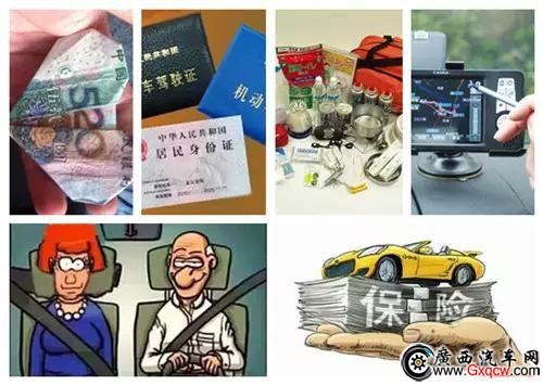 拖車?yán)K、電瓶線、充氣泵、滅火器、換胎扳手等常用工具,備用輪胎、火花塞、備用油桶、應(yīng)急燈、警示牌、千斤頂、鈑子等等。