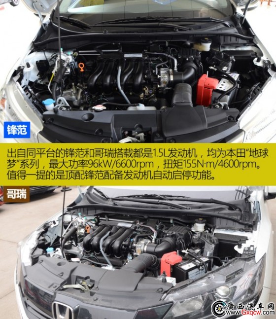 出自同平臺(tái)的鋒范和哥瑞搭載都是1.5L自然吸氣發(fā)動(dòng)機(jī),均為本田“地球夢(mèng)”系列,最大功率96kW/6600rpm,最大扭矩155N·m/4600rpm。值得一提的是頂配鋒范配備發(fā)動(dòng)機(jī)自動(dòng)啟停功能,而哥瑞則沒(méi)有。